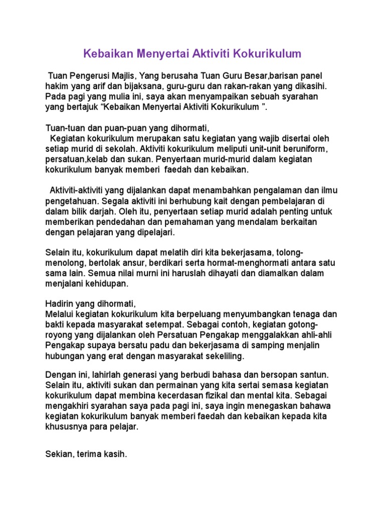 Syarahan Kepentingan Menyertai Aktiviti Kokurikulum Pdf