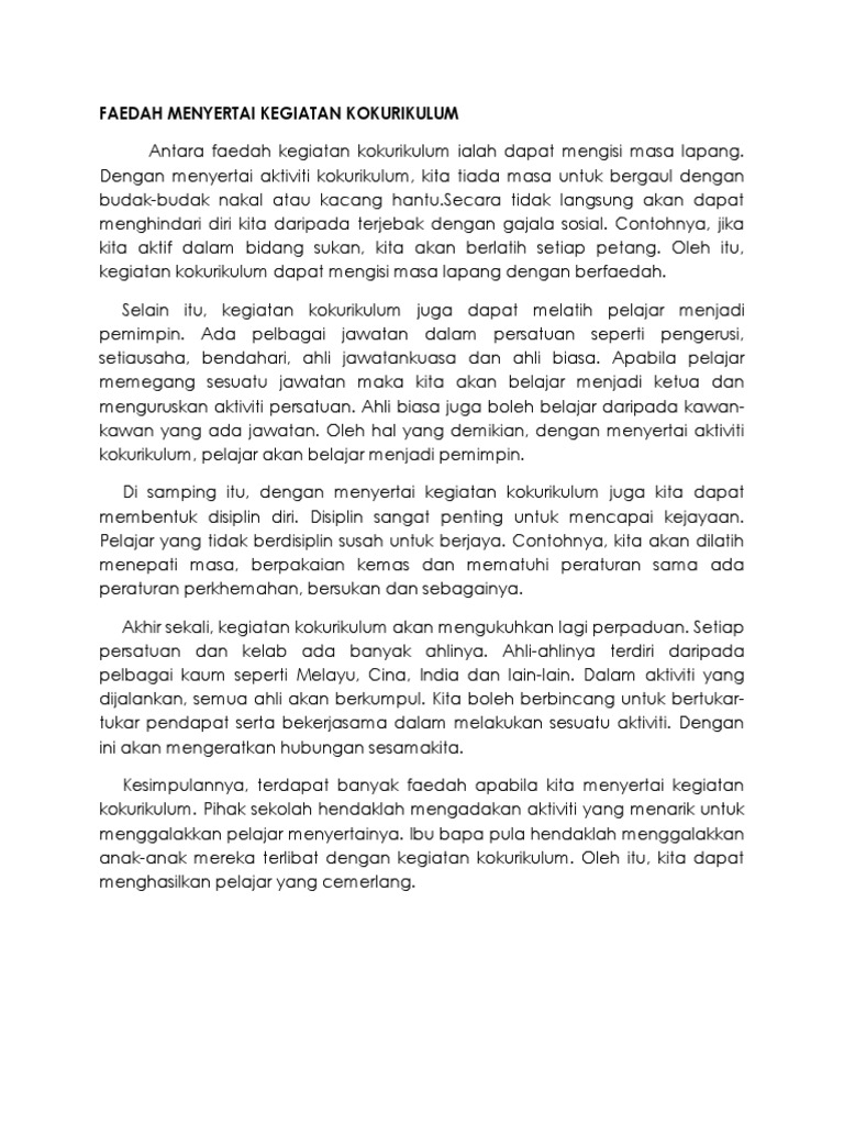 Faedah Faedah Menyertai Aktiviti Kokurikulum Pdf