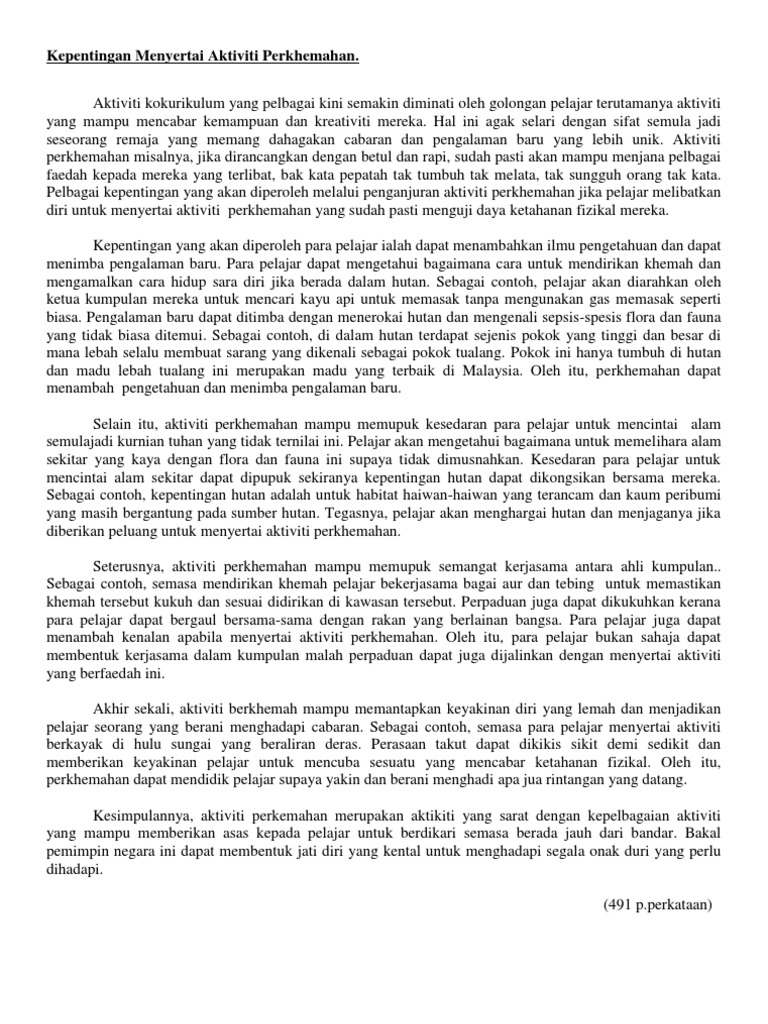 Karangan Faedah Menyertai Aktiviti Kokurikulum Karangan Pengalaman Menyertai Aktiviti Kokurikulum Amirctzx By restupudjiastuti19 August 03 2022 Post a. Semua pelajar digalakkan menyertai kegiatan. Laporan aktiviti perkhemahan 1.